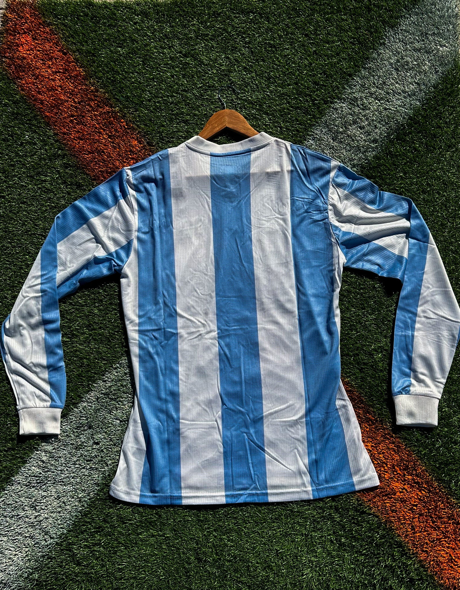 Inspired by Argentina’s 1974 kit, this modern reimagining features the classic sky blue and white stripes, now elevated with premium gold accents, including a retro Trefoil adidas logo and a minimalist AFA crest framed by a laurel wreath and three stars—symbolizing Argentina’s World Cup triumphs.