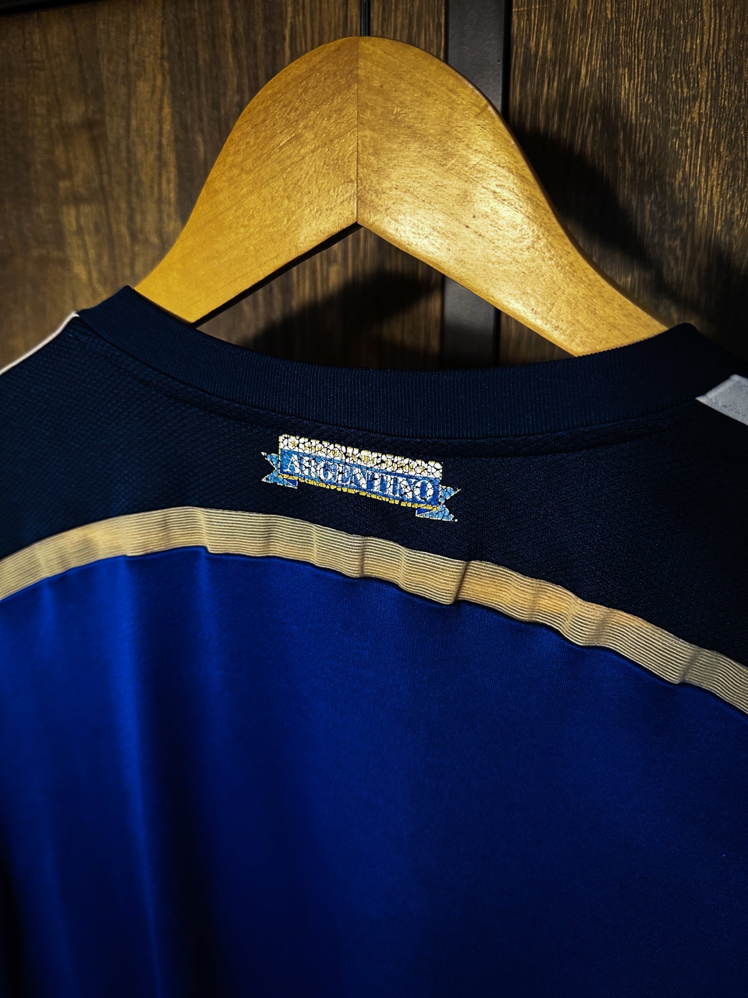Celebrate Argentina's World Cup journey with the 2014 Away Jersey, a bold and modern take on the nation’s proud football tradition. Featuring a navy blue body with striking sky blue accents, this Adidas kit was worn by La Albiceleste during their historic run to the final in Brazil.