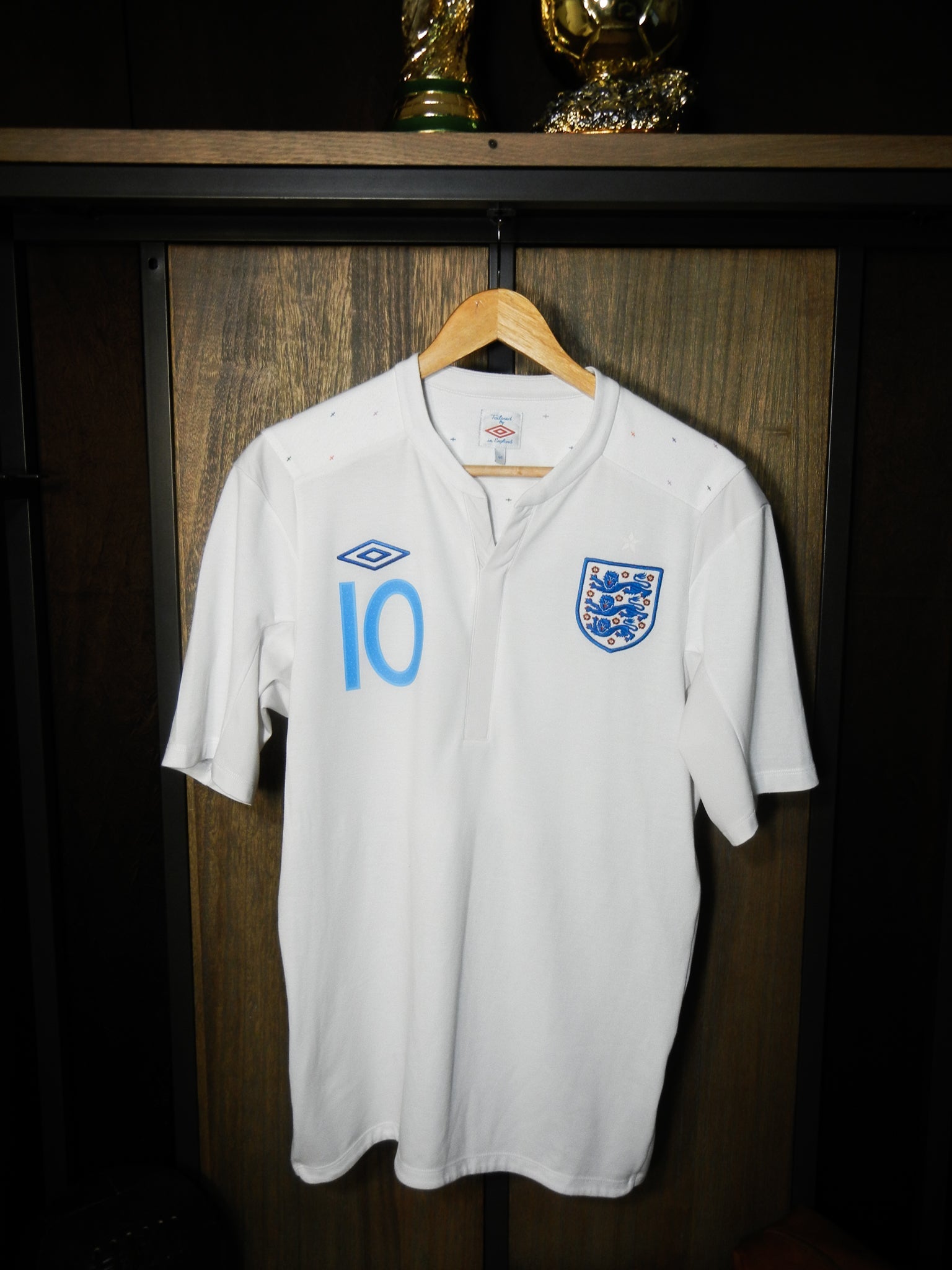 Crafted by Umbro under MPN: 8828227, this medium-sized jersey features a clean white base with subtle red detailing along the shoulders and collar. The embroidered England crest and Umbro logo give it an authentic, timeless feel. Rooney’s name and number are professionally printed in official player font.