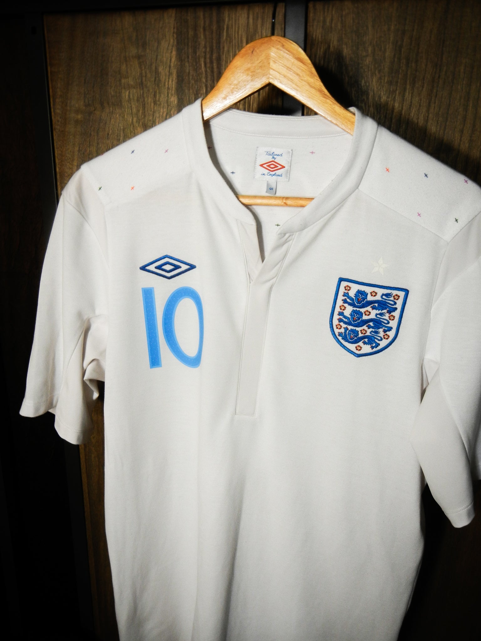 Represent the Three Lions in classic style with this England 2010/11 Home Jersey, featuring Wayne Rooney’s #10 on the back in official font. This shirt recalls England’s UEFA Euro 2012 qualifying campaign, where Rooney played a central role in leading the national team.