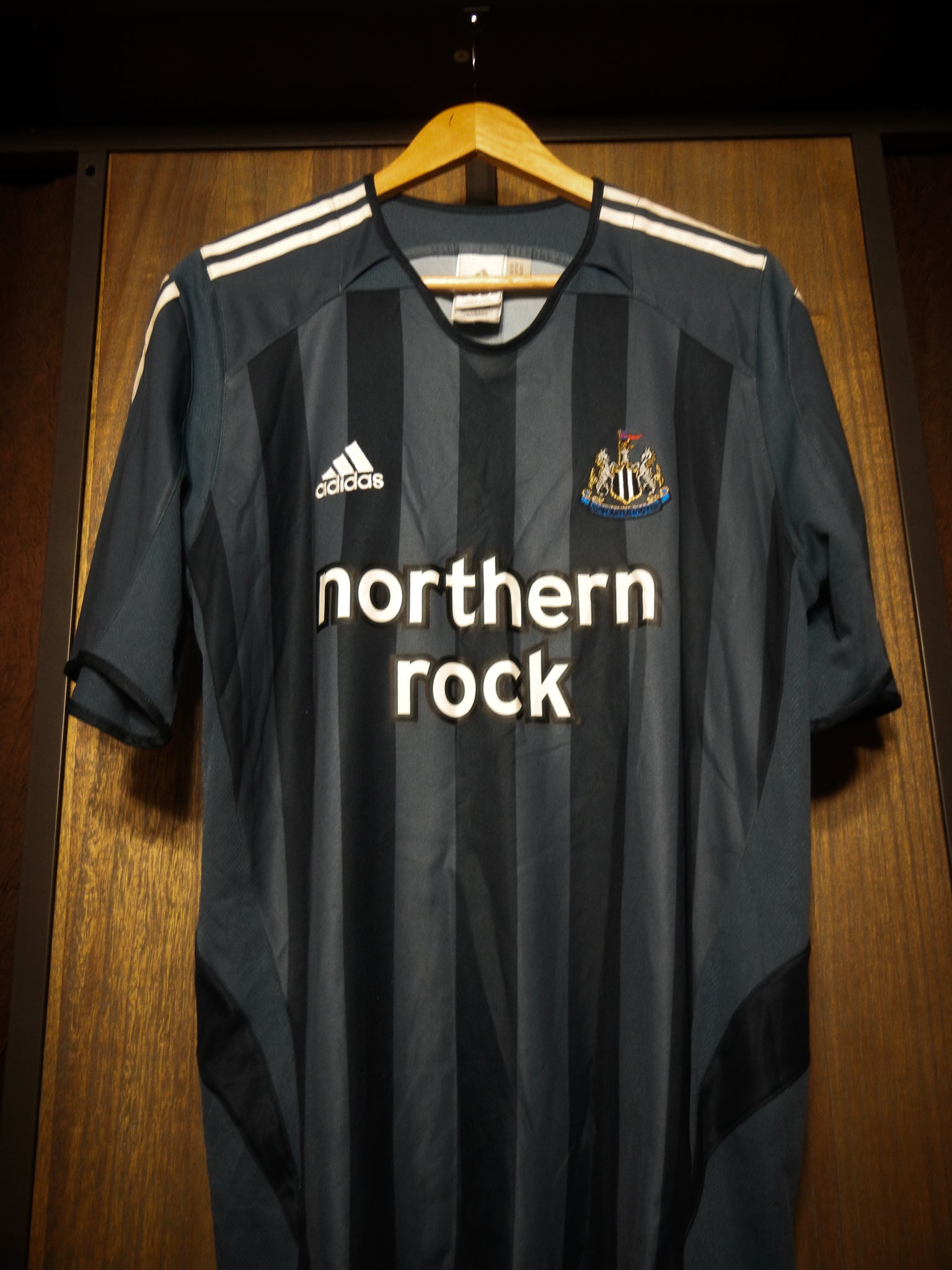 Produced by Adidas under the model number MPN: 110148 AHJ001, this shirt features a sleek dark gray body with black horizontal pinstripes, white detailing, and the classic Northern Rock sponsor emblazoned across the chest. Owen’s name and number are professionally printed on the back in official 2005 Premier League style.