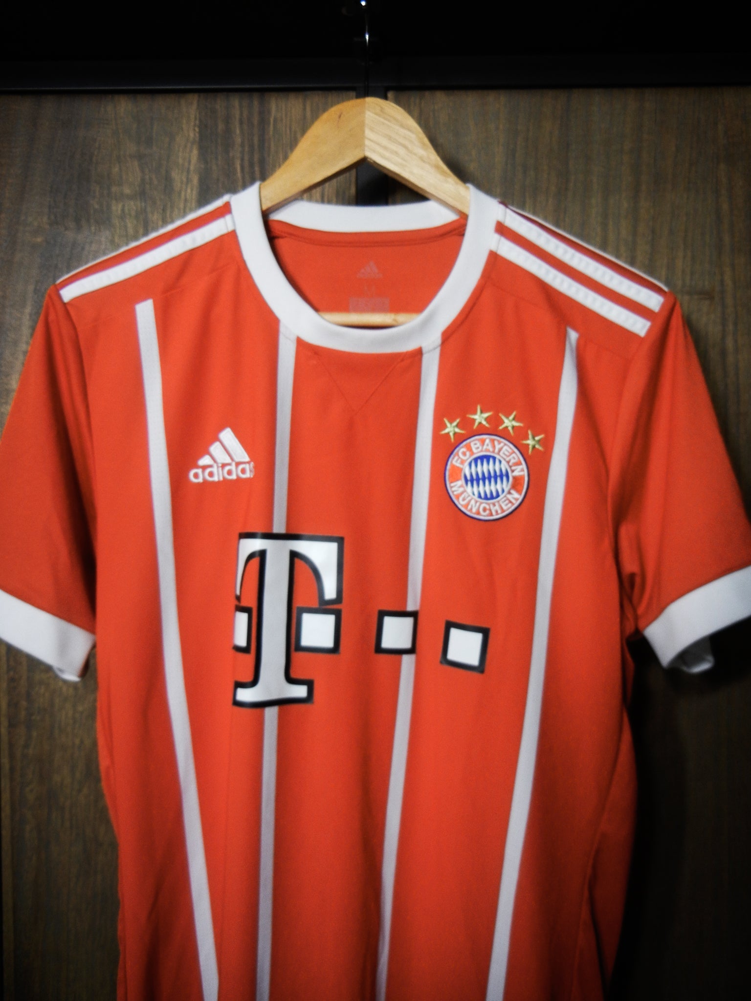 Celebrate the firepower of Robert Lewandowski with this Bayern Munich 2017/2018 Home Jersey, featuring the legendary striker’s #9 on the back. Crafted by Adidas, this official red kit pays tribute to Bayern’s dominance in German football during the late 2010s.