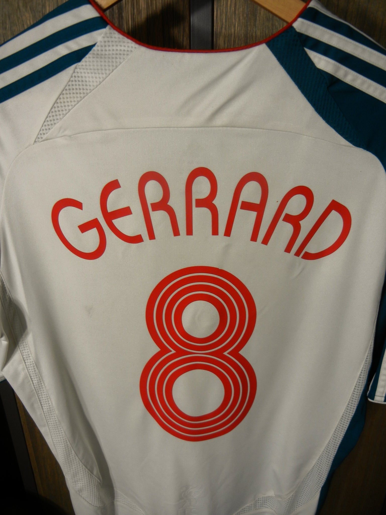 Represent the captain in style with this rare Liverpool 2006/2007 Third Jersey, worn during away clashes under the lights. Featuring Steven Gerrard’s #8, this green and white Adidas design is a standout kit from the mid-2000s—bold, unique, and instantly recognizable among supporters.