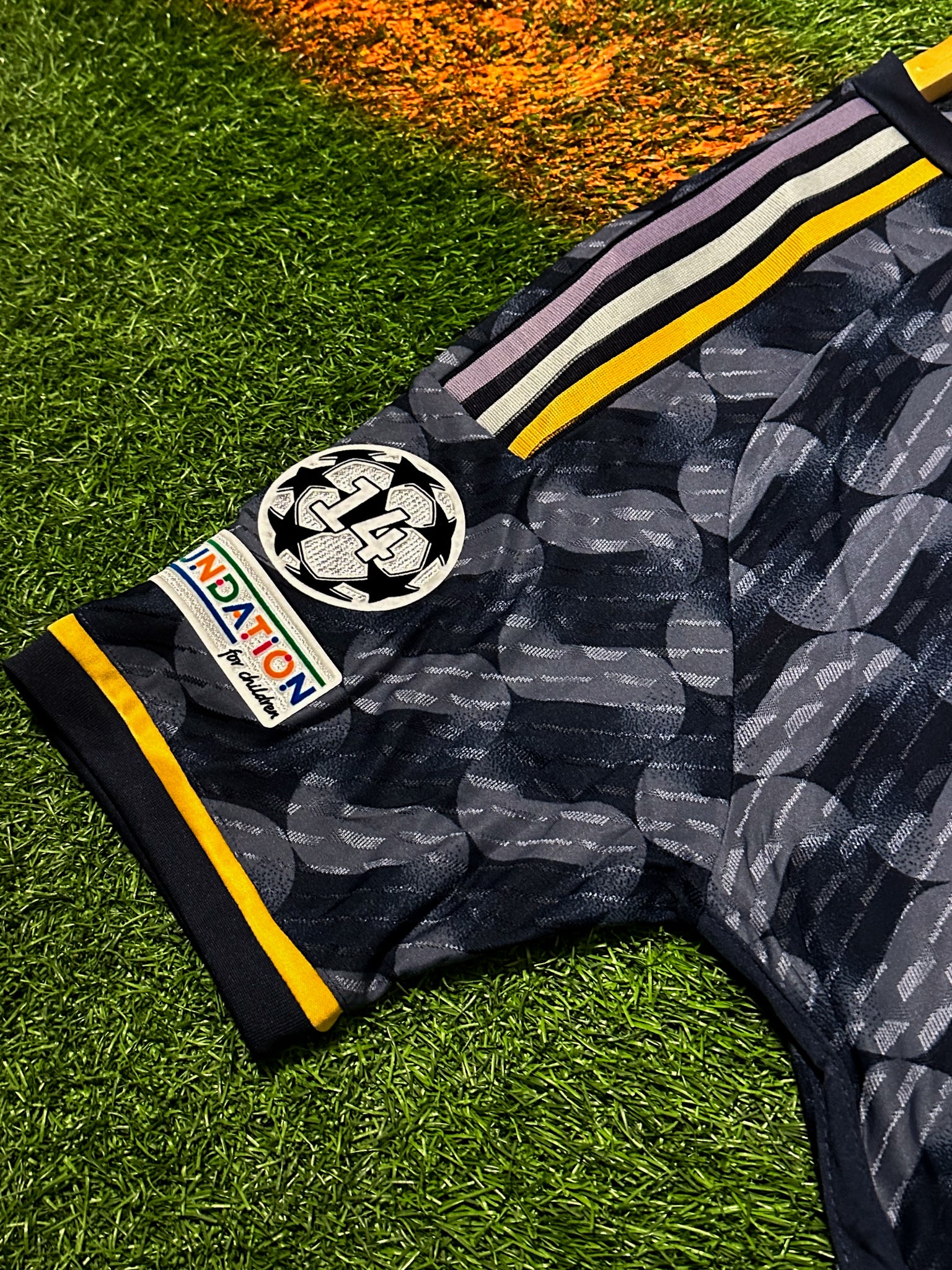 Real Madrid 2023/2024 Away Jersey – Vini Jr 7- Navy & Gold Champions league Kit