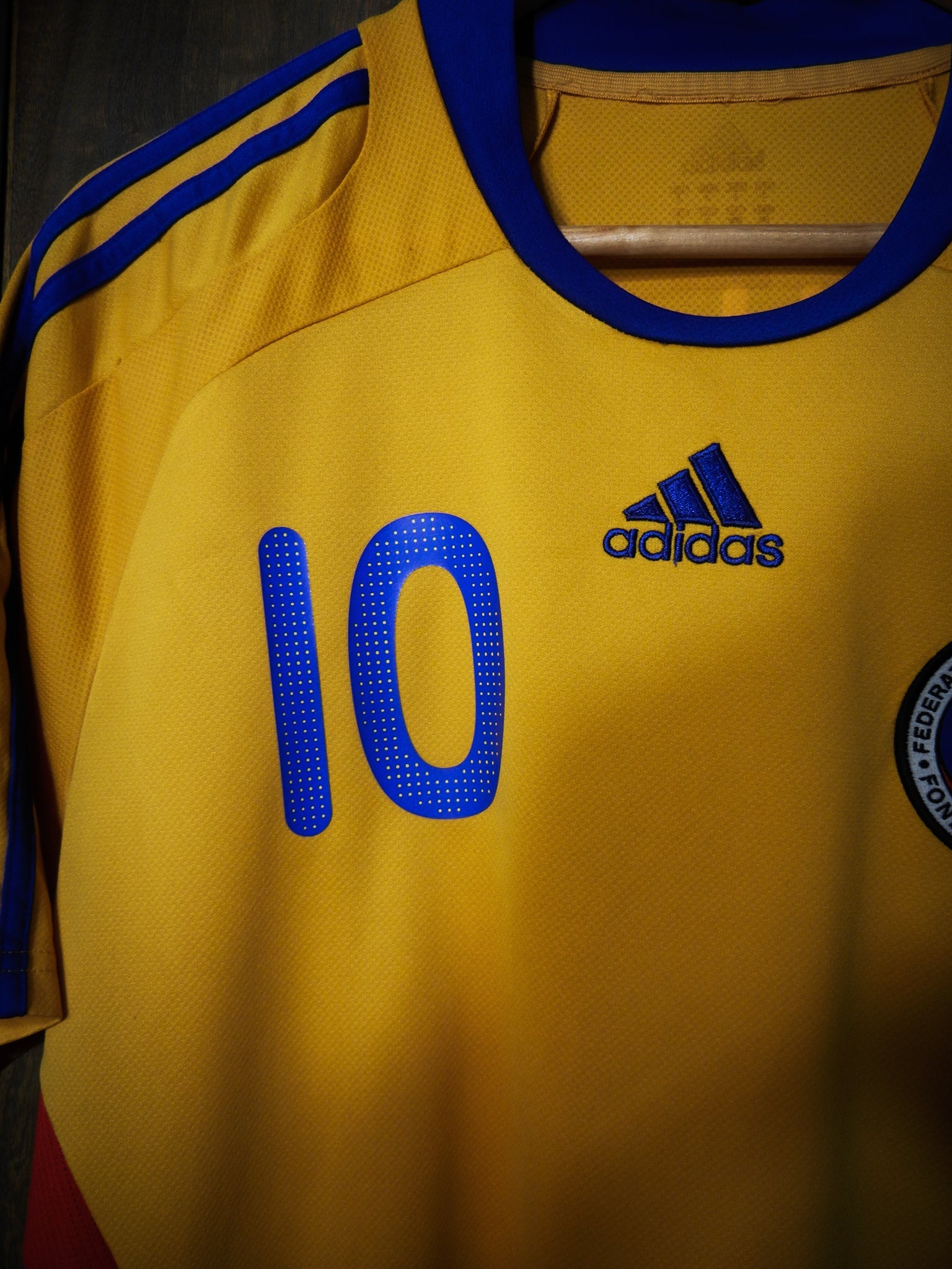Celebrate a golden era of Romanian football with this official Romania 2008/2009 Home Jersey, featuring Adrian Mutu’s #10 on the back in authentic style. Worn during Romania's competitive fixtures in the Euro 2008 era, this iconic yellow Adidas shirt pays tribute to one of the nation’s most legendary forwards.